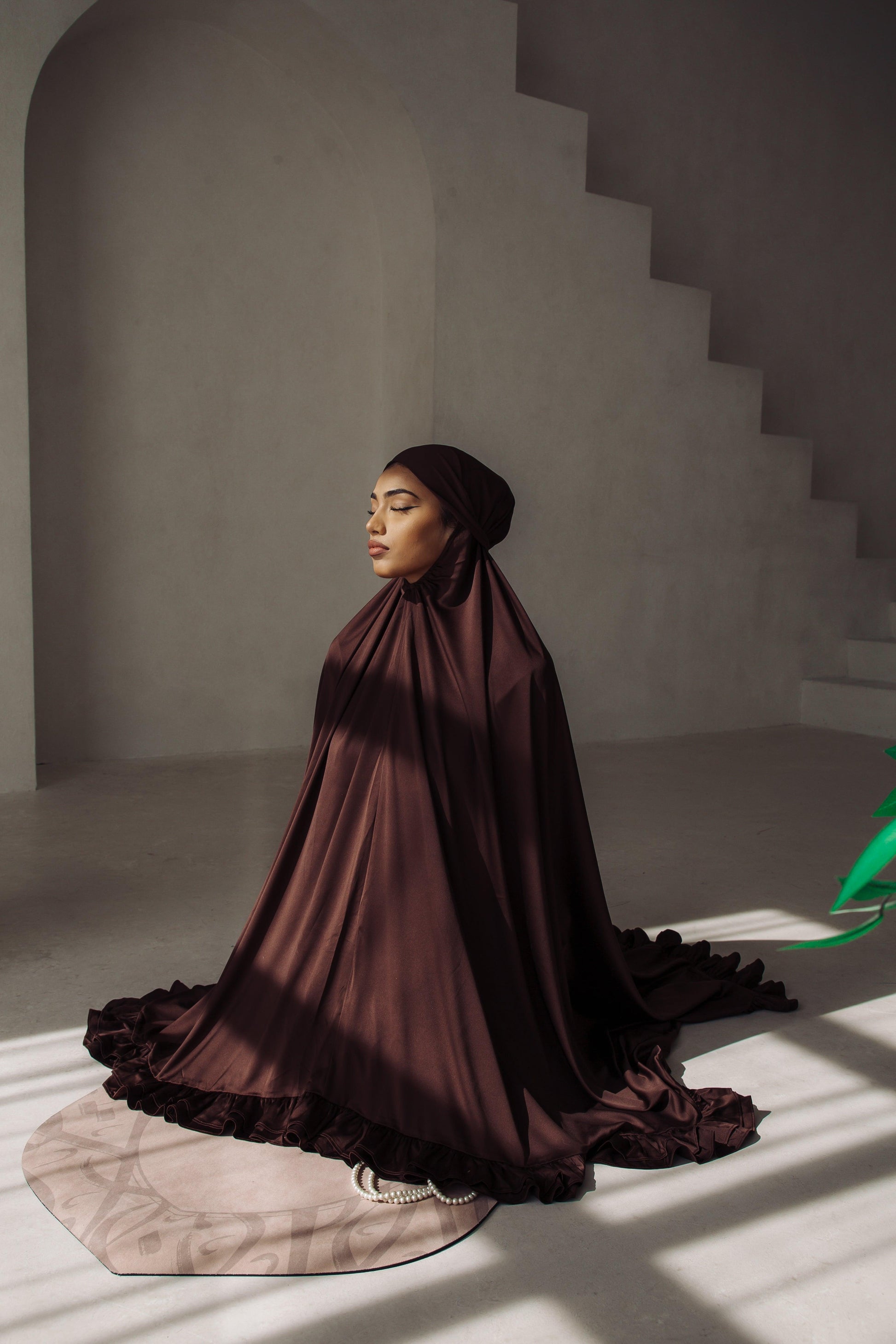 Introducing: The Prayer Set. As a designer, I was determined to create a prayer set that would revolutionize the market. You’re probably well aware of prayer sets that exist in the market with issues like heaviness, discomfort, and slipping. After a lot of research and testing, I finally came up with a design that solves all your problems. The Prayer Set is a perfect blend of style and comfort, featuring a unique design that embodies elegance. The satin-silk blend material used is of the highest quality, making it durable and long-lasting, while also ensuring that it is gentle on your skin.